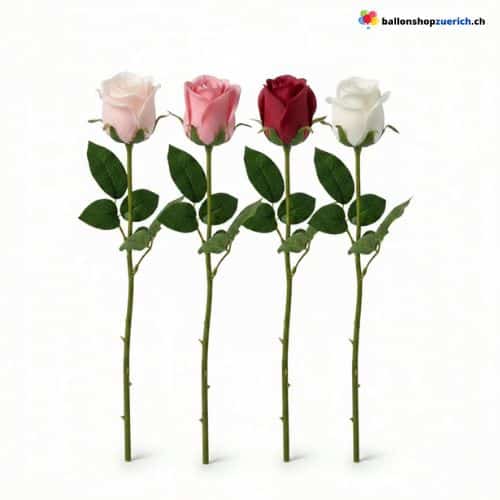 The closed bud of this artificial rose has a particularly elegant and romantic look. Thanks to its slender shape, it can be perfectly inserted through the neck of bobo balloons to create trendy "flower balloons." Whether in classic red for love, innocent white for weddings, or delicate rose/pink for playful arrangements – this rose never wilts and provides lasting joy.