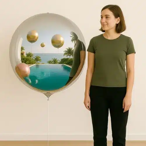 Este globo de aluminio XXXL, con un diámetro aproximado de 140 cm es enorme y garantiza un efecto impactante, ya sea en cumpleaños, bodas, aniversarios o fiestas en la piscina.
