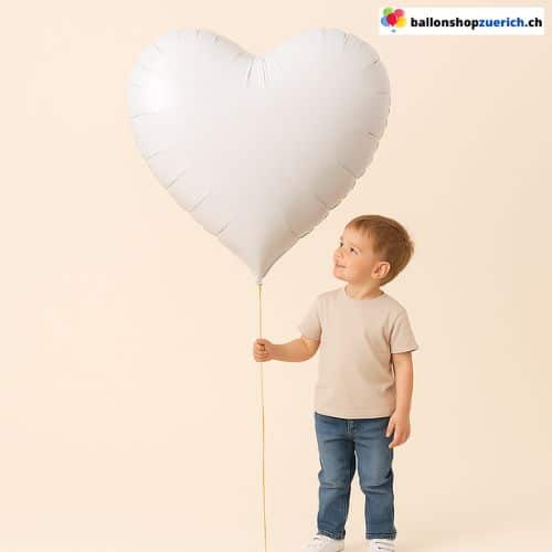 ❤️ Globo de corazón gigante, blanco, blanco nieve, mate, globo de aluminio de 100 cm 🎈✨