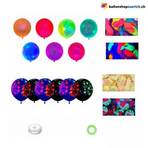 Los coloridos globos de neón crean espectaculares efectos de color que brillan con luz ultravioleta. Combinados con los accesorios, puedes crear rápida y fácilmente una guirnalda luminosa: un elemento destacado para cualquier fiesta con un toque impactante.