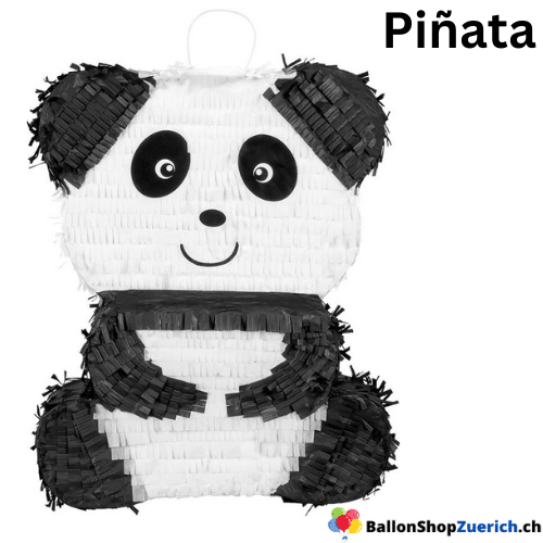 Piñata de Oso Panda, tamaño: 50 cm. Esta piñata se puede usar como juego o como decoración colorida. Llénala con dulces o regalitos por la abertura trasera. Luego, cuélgala e intenta abrirla con los ojos vendados usando un palito (no incluido; se puede pedir por separado aquí ). La piñata solo debe usarse bajo la supervisión de un adulto. Mantén la piñata alejada del fuego o de objetos calientes; es inflamable.