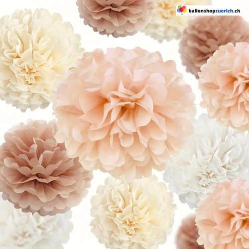 12 pompons en papier blanc champagne et crème, boules de fleurs suspendues, décoration pour mariages, baptêmes, confirmations, communions, anniversaires, décorations de fête