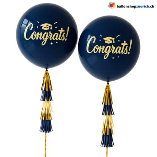 Célébrez votre grand jour avec élégance ! Cet élégant ensemble de ballons comprend ballons en latex bleu marine « Félicitations ! » et des guirlandes à pompons , dorées, bleues et blanches. La décoration idéale pour une remise de diplômes , un concours d'entrée à l'université , la fin du lycée ou toute autre réussite !