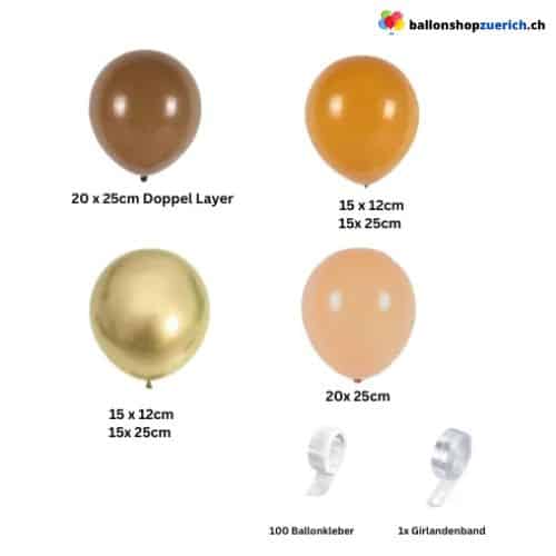 L'alliance de tons bruns chauds et d'un or chromé brillant crée une ambiance festive. Les différentes tailles (12 à 25 cm) apportent volume et texture. Facile à monter grâce à des guirlandes de ballons et des pastilles adhésives, cet ensemble se prête à de multiples utilisations : arche, cadre ou fond.