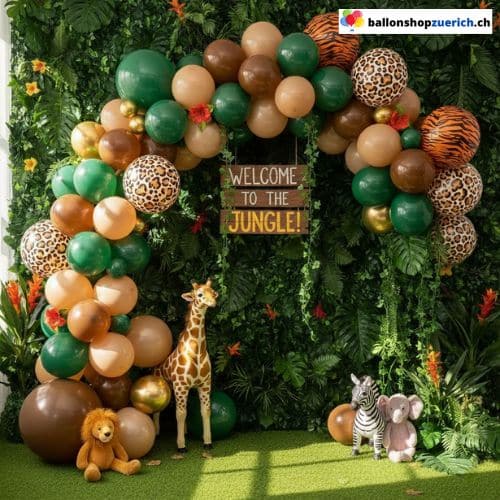 - ✨ Colori safari abbinati a palloncini con stampa animalier