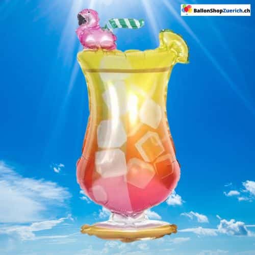 Palloncino in lamina di compleanno con fenicottero, grande bicchiere da cocktail, festa estiva, palloncino ad elio per compleanno