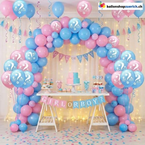 Niente preoccupa i futuri genitori e gli ospiti più della domanda sul sesso del nascituro. Questi palloncini in lattice affrontano proprio questo argomento: stampati con un grande punto interrogativo e graziosi simboli di neonati, dividono giocosamente gli invitati in "Team Blu" e "Team Rosa". Ideali per decorare la stanza prima che il grande segreto venga svelato.