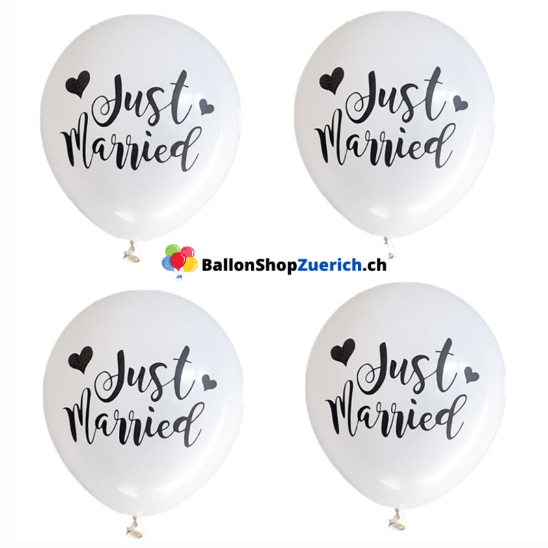 5 Stück Set “Just Married” Aufdruck Latex Natur Kautschuk Luftballons Ballon Hochzeit Dekorationen