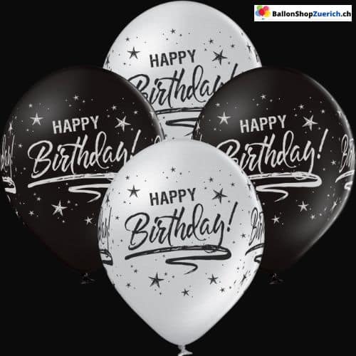 6 Stück Set “Happy Birthday” Perl Schwarz Silber Halbtransparent Latex Natur Kautschuk Luftballons Ballon Kinder Geburtstagsfeier Dekorationen Party