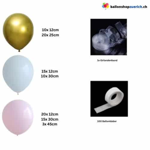 Ballon Girlande Pastell Rosa Hellblau Metallic Gold 95-teilig
