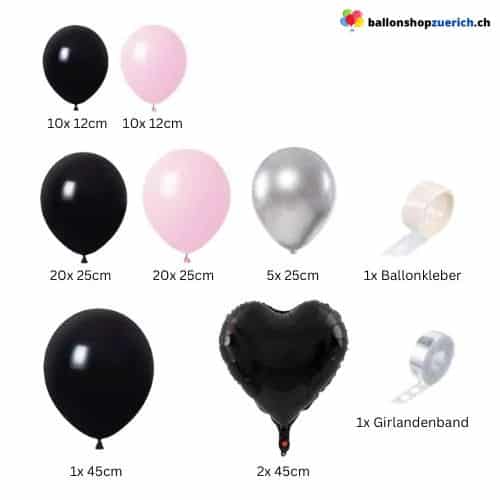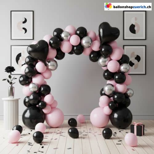 Die Kombination von Rosa und Schwarz schafft Spannung zwischen Leichtigkeit und Eleganz. Silberne Ballons verstärken den Glamour-Effekt und reflektieren das Licht für festliche Akzente. Die schwarzen Folien-Herzen setzen zusätzlich starke Highlights und machen die Girlande zu einem echten Eyecatcher. Mit pinken Elementen wird dein Event unvergesslich und deine Deko zum Fotospot. Pink ist die perfekte Farbe für jede Feier.