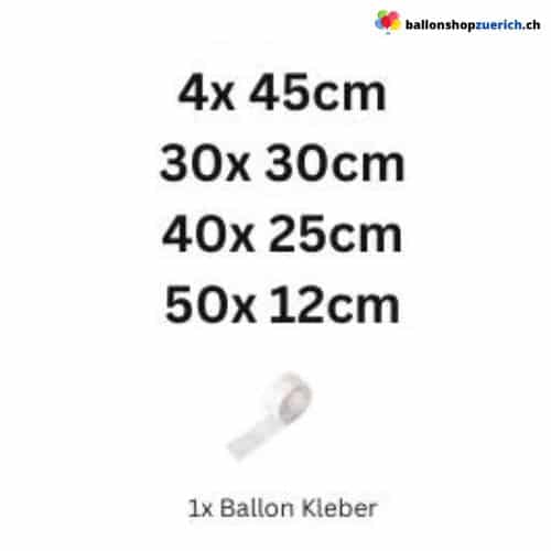 Einzelne Ballons können separat mit Helium gefüllt werden (z. B. 45 cm = 0.028 m³).