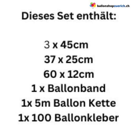 ⚠️ Hinweis: Die angegebenen Ballonmengen sind verbindlich für den Packungsinhalt. Die auf Bildern dargestellte Girlande dient als Inspiration und ungefähre Farbvorstellung; Umfang und Grösse können variieren.