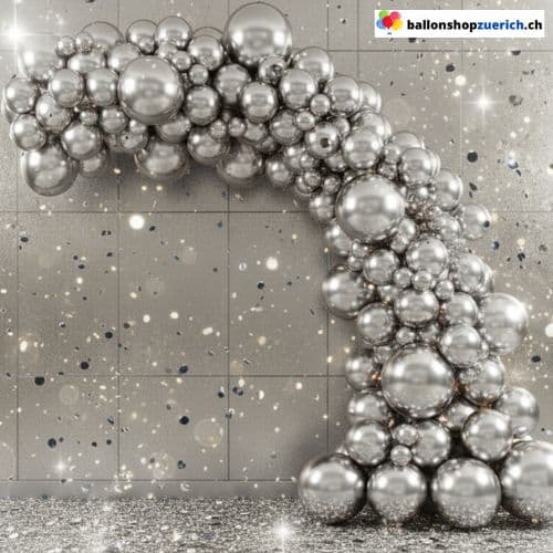 Dieses Set bringt puren Glamour in deine Feier. Die Ballons im Metallic-Silber-Look wirken luxuriös und festlich – ideal als Ballonbogen, Hintergrund oder Eingangsdekoration. Ein Must-have für elegante Events und besondere Anlässe.