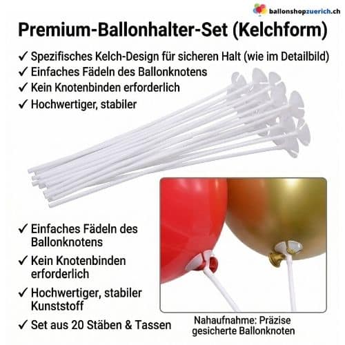 WICHTIG: Dieses Produkt ist ausschliesslich fĂŒr LuftfĂŒllungen gedacht. Ballonhalter sind die kostengĂŒnstige Alternative zu Helium, da sie den Ballon mechanisch stĂŒtzen.