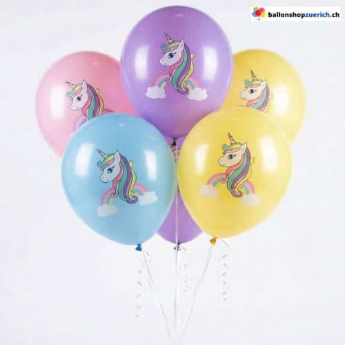 Einhörner sind der Dauerbrenner auf jedem Kindergeburtstag. Jeder einzelne **Einhorn Ballon** in diesem Set besticht durch seinen hochwertigen Druck auf trendigen Pastell-Hintergründen: Ein verträumtes Einhorn mit bunter Mähne, das auf Wolken vor einem Regenbogen schwebt. Die harmonische Farbmischung macht das Dekorieren kinderleicht – einfach aufblasen und schon hast du ein stimmiges, pastellbuntes Bouquet.