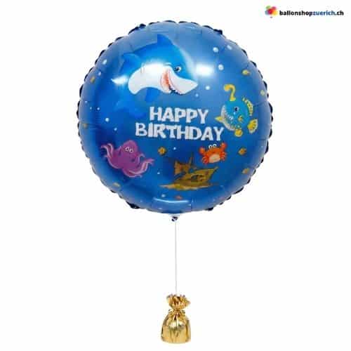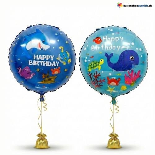 - 1× Folienballon “Happy Birthday” (Motiv nach Wahl: Hai oder Wal)