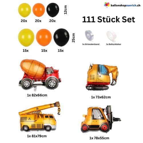- ✨ Baustellen-Design mit Fahrzeug-Ballons