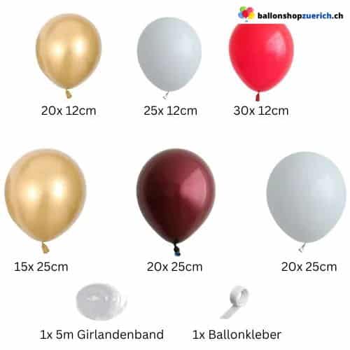 Die Mischung aus 12 cm und 25 cm baut Volumen und Dynamik auf. Rubinrot akzentuiert, Weiss hellt auf, Gold glänzt. Das Ballonbogen Set funktioniert für Weihnachten, Geburtstag Deko, Baby Shower Deko und Hochzeit Girlande. Dieses Rubinrot Ballon Set liefert Wirkung ohne komplizierten Aufbau.