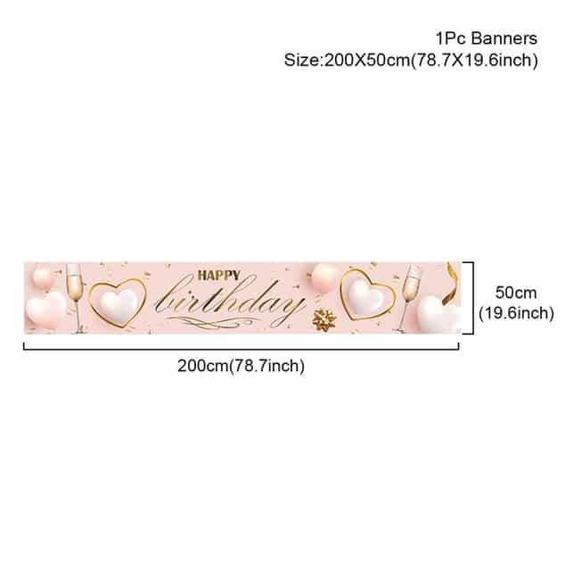6️⃣ Happy Birthday Banner Pink & Gold mit Herzen