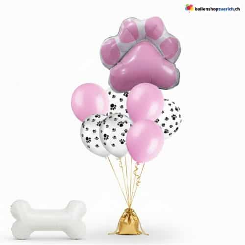 - Pink (Girl): Mit einer grossen rosa Pfote und pinken Ballons – perfekt für Hundedamen.
