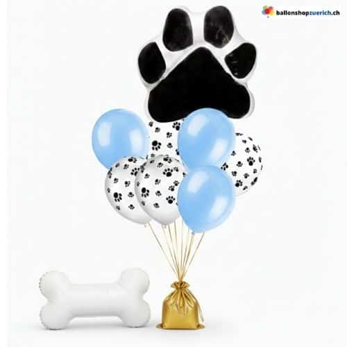- Blau (Boy): Mit einer grossen schwarzen Pfote und blauen Ballons – ideal für Rüden.