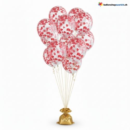 - Füllung: Rotes Herz-Konfetti aus Seidenpapier (bereits im Ballon enthalten)