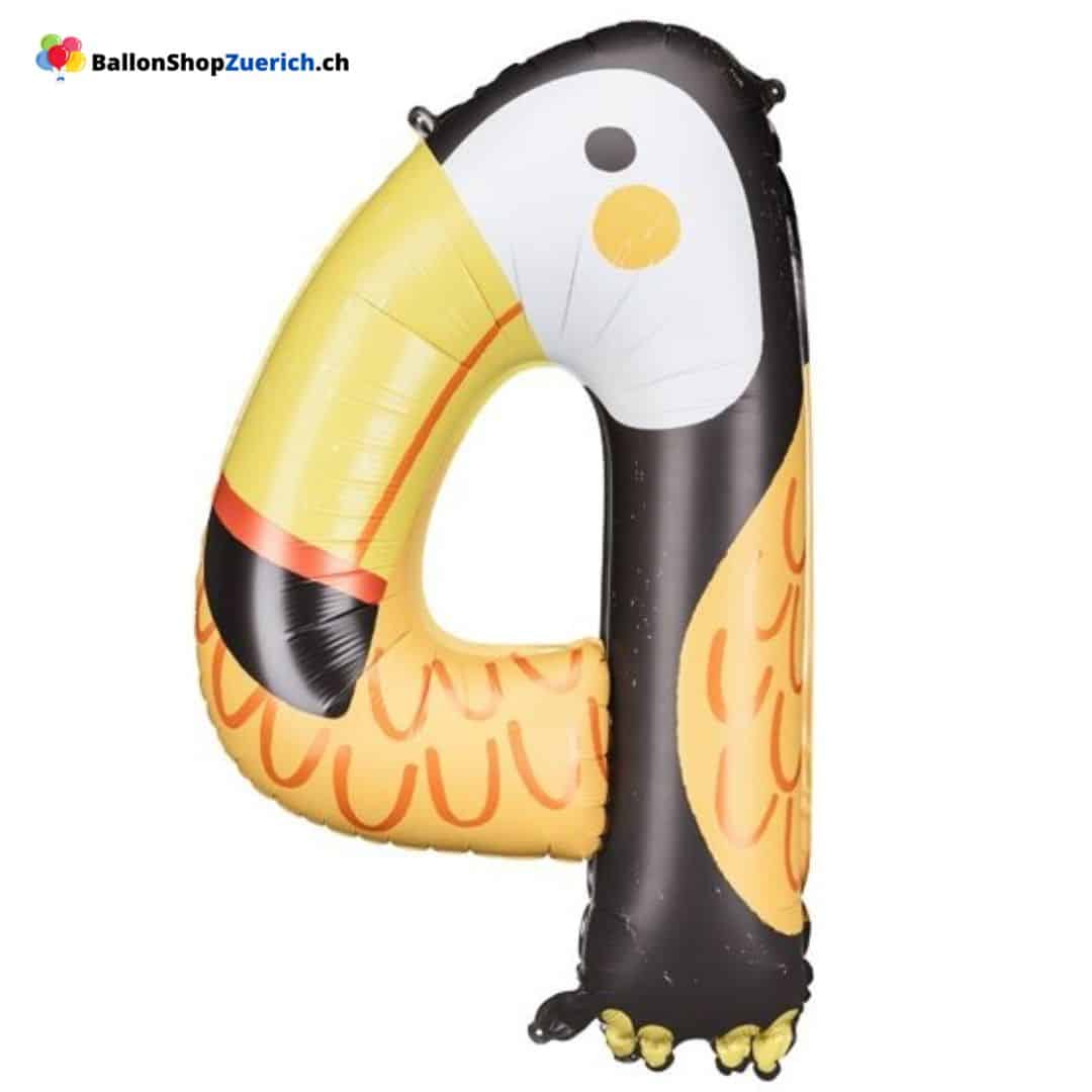 Grosser Luftballon Zahl 4 Tukan Tier Geburtstag Happy Birthday Zahl farbiger Heliumballon – Folienballon Geburtstagsfeier Dekoration Kinder Party
