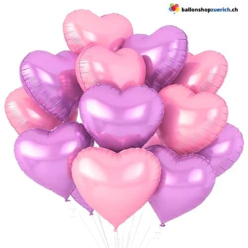 💜💗 Luftballons — Herz Medium Set 10 Stück Lila & Pink — Folienballons 🎈✨