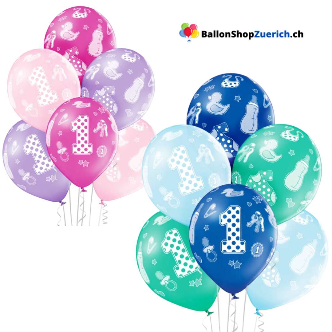 🎈👶 6er Set Luftballons – 1. Geburtstag Boy oder Girl