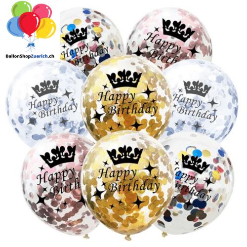 Luftballons Set 10 Stück Konfetti Ballons Happy Birthday Silber, Rose Gold, Gold oder Color