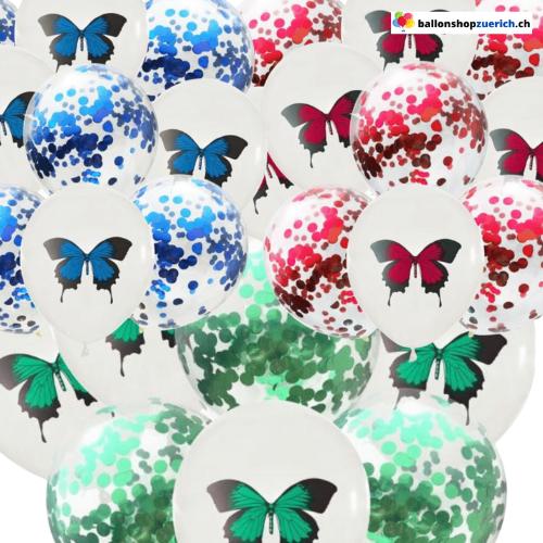 Luftballons Set 10 Stück Schmetterlingsballons und Konfetti Ballons