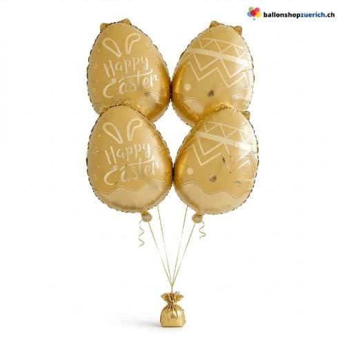 - 4× Osterhase Ei Folienballon (Gold mit weissem Aufdruck)