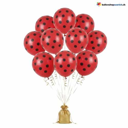 - Für eine Marienkäfer-Party: Mische die rot-schwarzen Ballons mit schwarzen und grünen Ballons (für die Wiese).