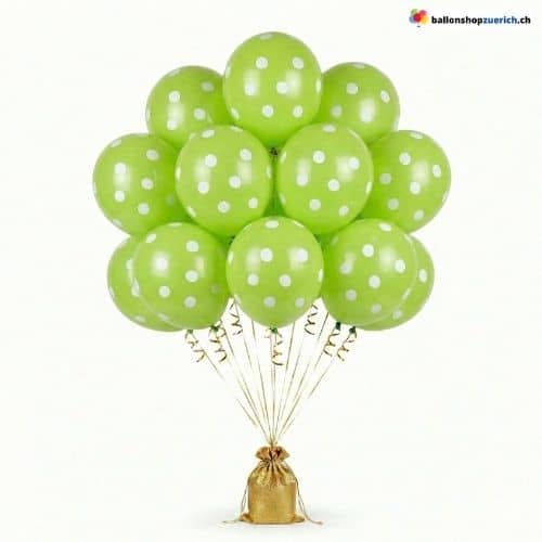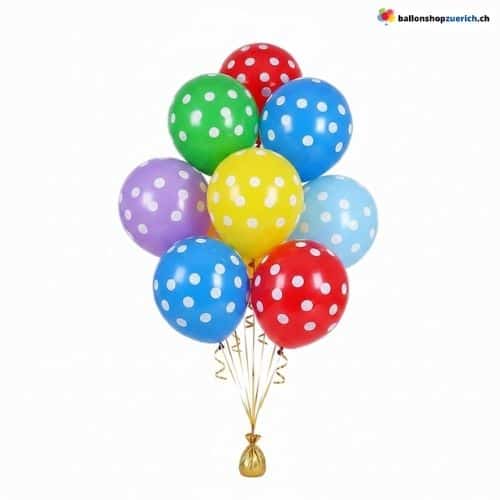 - Kombiniere die gepunkteten Ballons mit einfarbigen Ballons in der gleichen Grundfarbe, um das Gesamtbild etwas zu “beruhigen”.
