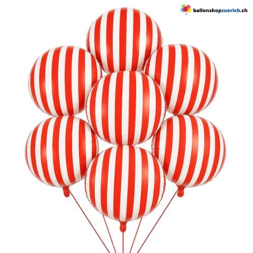 🎈 Rund gestreifter Folienballon Rot-Weiss 🎉✨