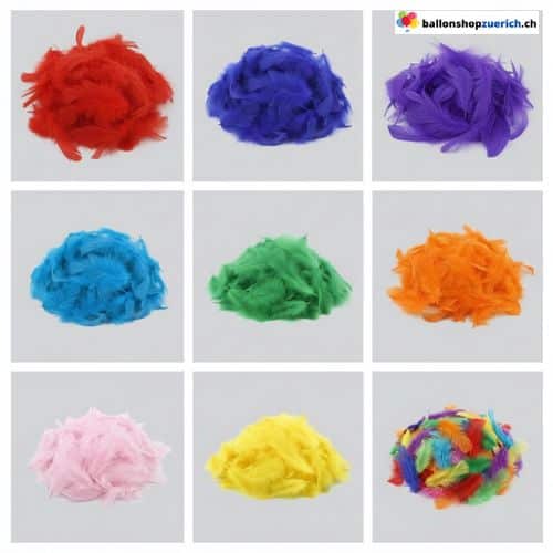 Kleine Federn, grosse Wirkung! Mit einer Grösse von 4-8 cm sind diese Federn ideal, um sich im Inneren eines Ballons perfekt zu verteilen, ohne zu verklumpen. Sie sorgen für Volumen und Farbe, bleiben aber leicht und luftig. Ob für eine romantische Hochzeit in Weiss, eine bunte Fasnachtsparty in Rainbow oder eine Baby Shower in Hellblau – hier findest du die perfekte Nuance.