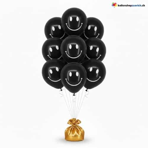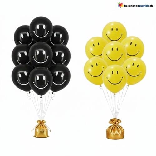 • Variante Schwarz: Die coole Version des Klassikers. Ein tiefschwarzer Ballon mit weissem Gesichtsdruck. Wirkt modern, etwas frecher und passt toll zu monochromer Deko oder Teenager-Partys.