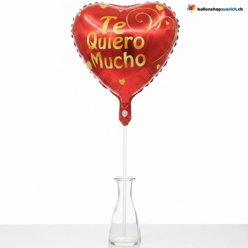 - 1× Herzballon “Te Quiero Mucho” (Folie, Rot/Gold)