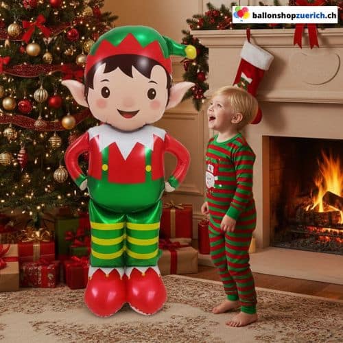 Hol dir den fleissigen Helfer vom Nordpol direkt ins Wohnzimmer! Dieser riesige XXL Weihnachtself Ballon ist mit ca. 155 cm Höhe eine beeindruckende Dekoration, die Kinderaugen zum Leuchten bringt und für fröhliche Weihnachtsstimmung sorgt.
