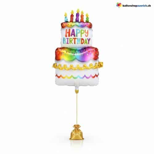 - 1 воздушный шар в форме торта с надписью «С днем рождения» (фольгированный, разноцветный)